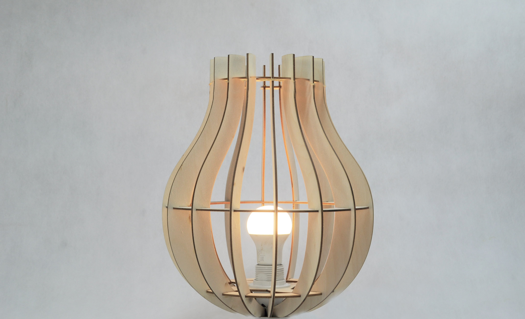 Lampa jest wykonana ze sklejki, polakierowana nietoksycznym lakierem wodnym o odcieniu pół-mat.