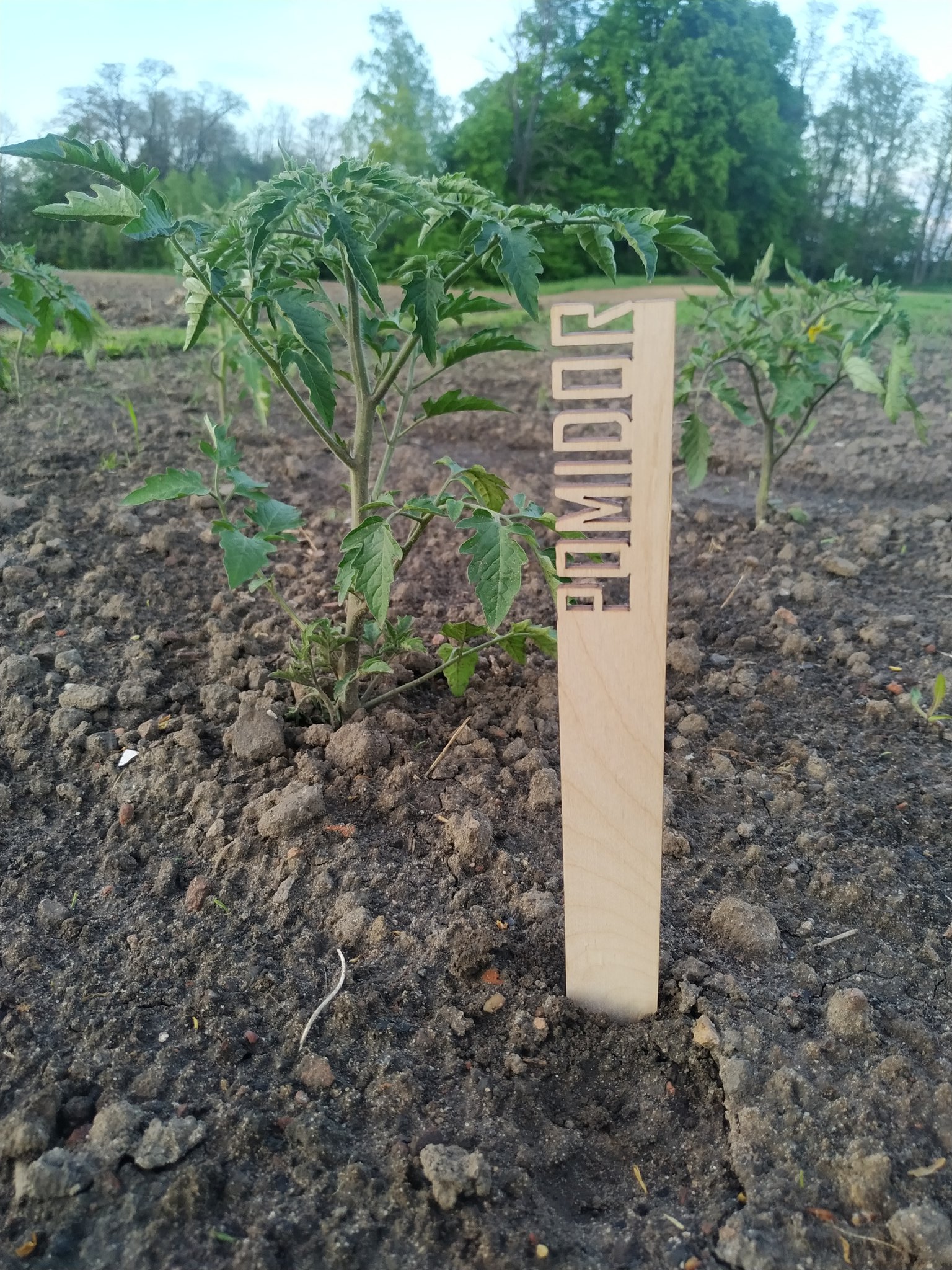 Oryginalna etykieta warzywna do oznaczania grządek warzywnych.