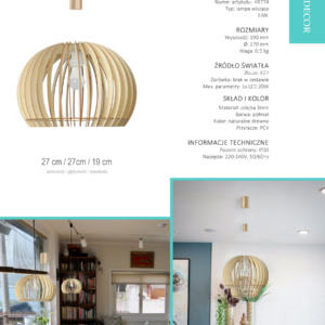 – dekoracyjna puszka przy-sufitowa wykonana z drewna.