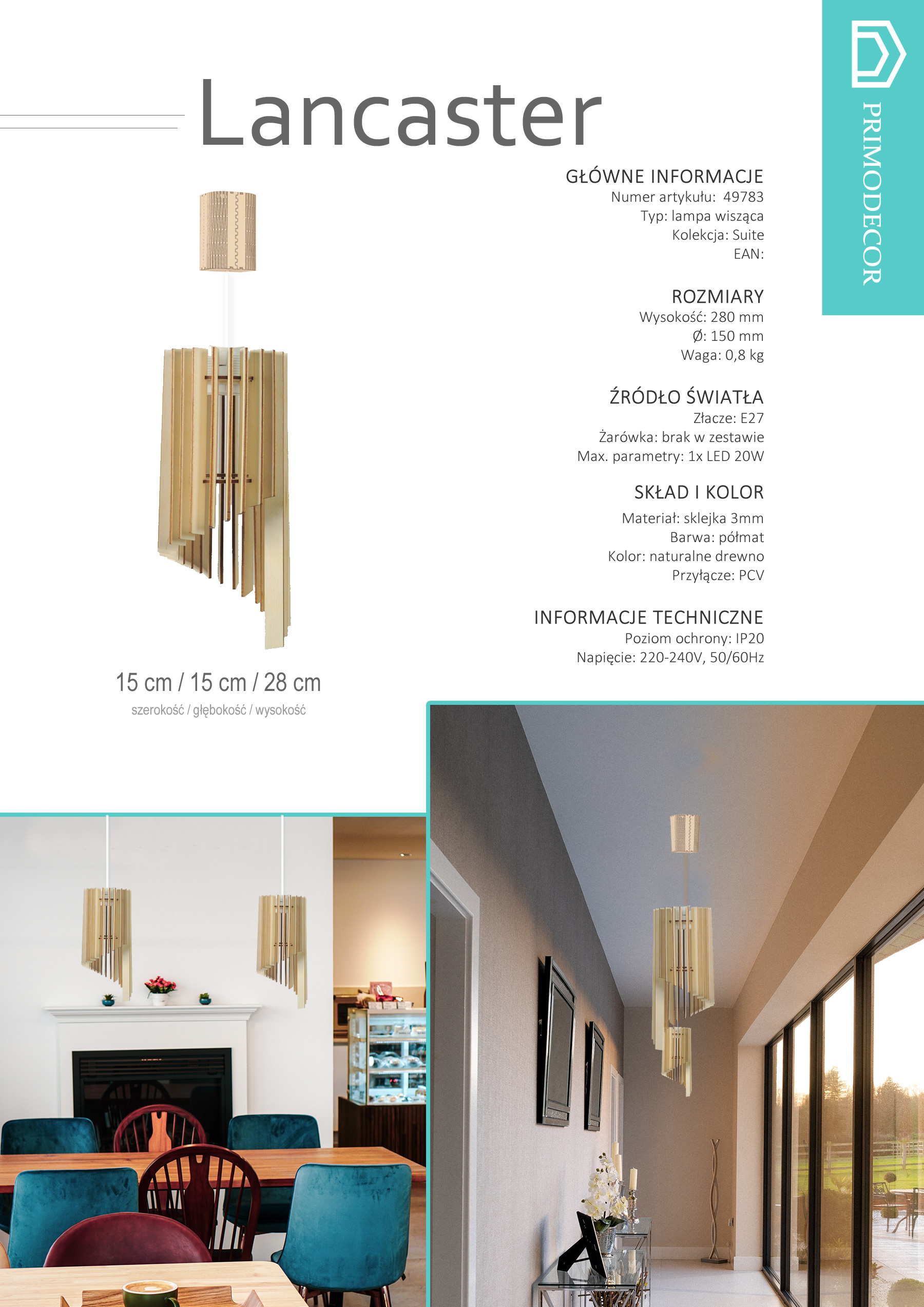 Lampa dostarczana jest w opakowaniu jednostkowym, zmontowana.